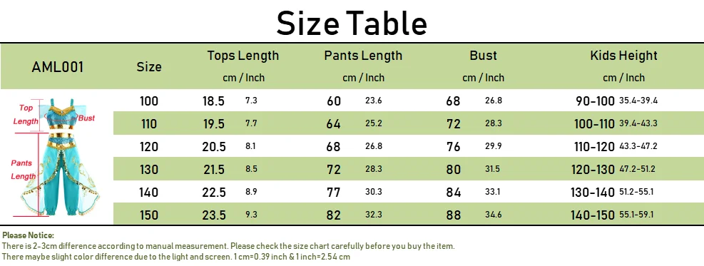 Name: Jasmine Princess Cosplay Costume Girl Jasmine Sets Cartoon Children Birthday Party Gift Halloween Fantasy Outfits