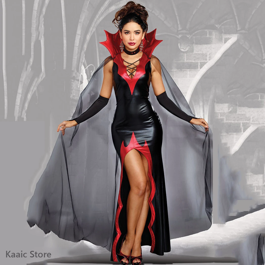 Cosplay Witch Dress Cloak Women Patent Leather Prom Magic Vampire Female Demon Christmas Costumes Role Playing Halloween Costume