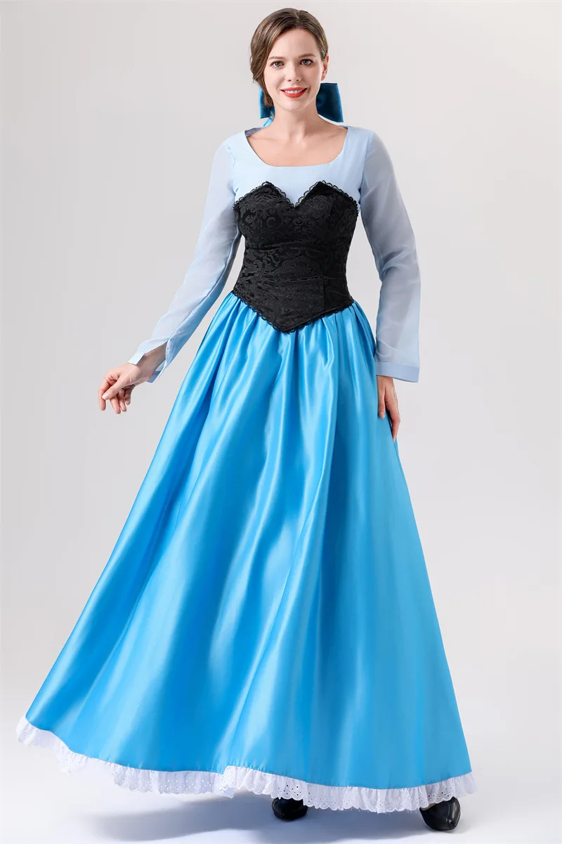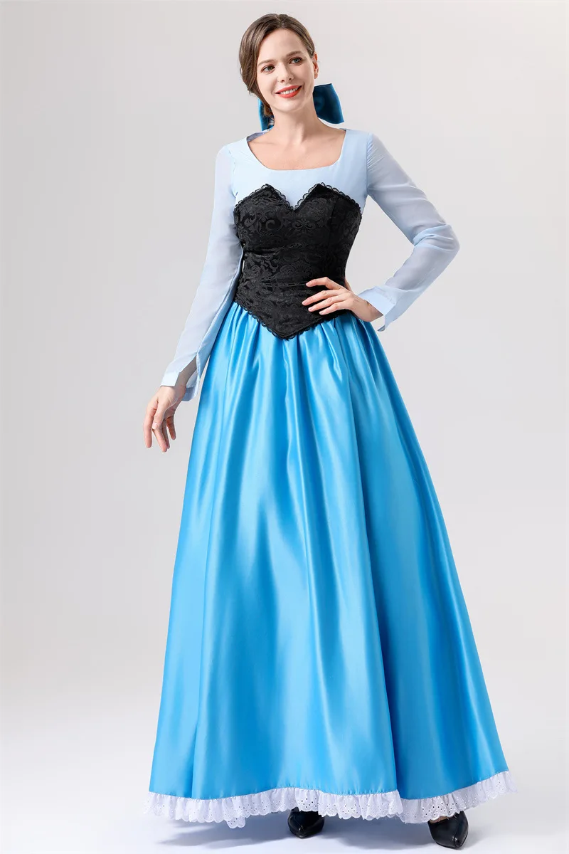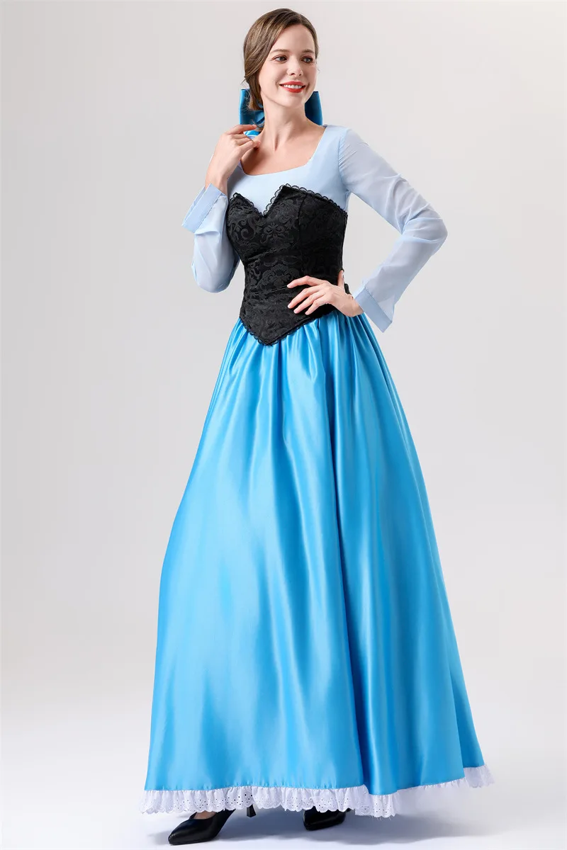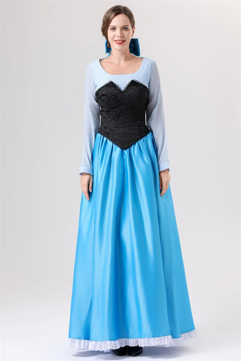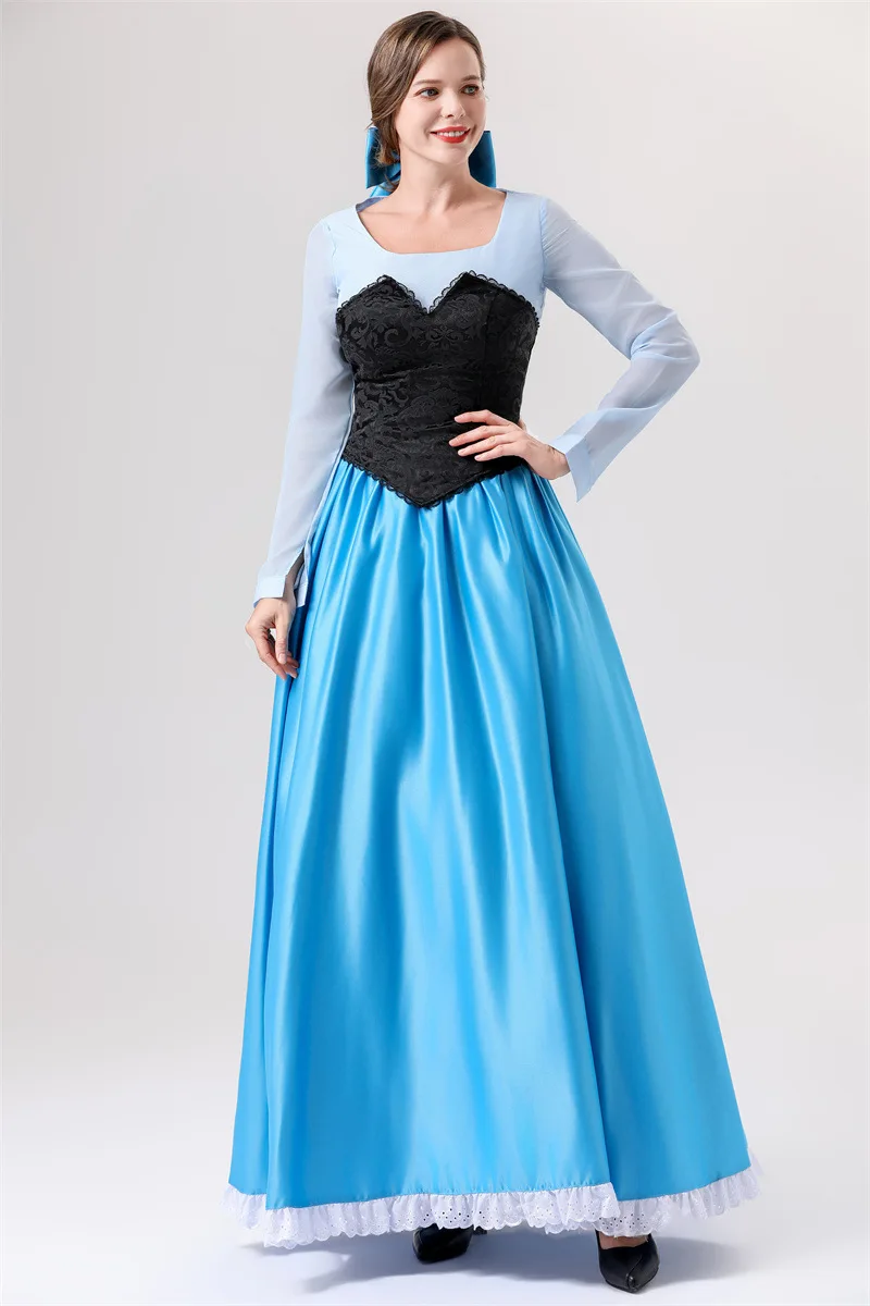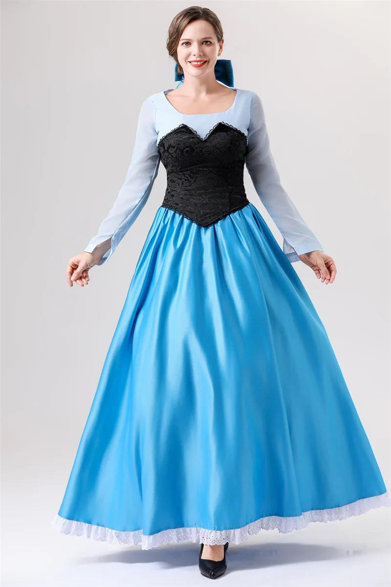 Halloween Adult Costume Ariel Princess COS Mermaid Princess Blue Dress Costume Party Performance Clothing for Women